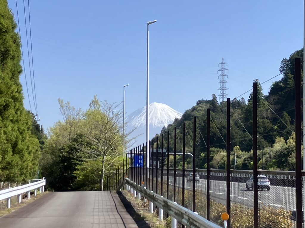 移動中、ふと前を見ると、青空の中にくっきりと見える富士山 🗻
